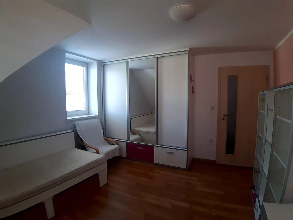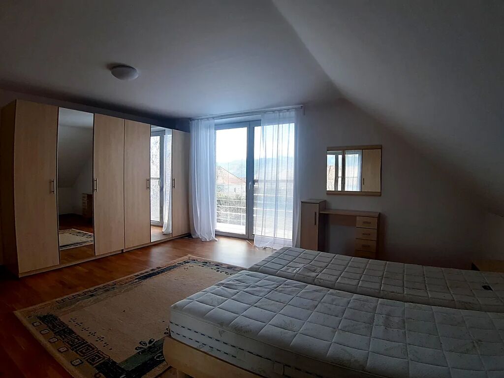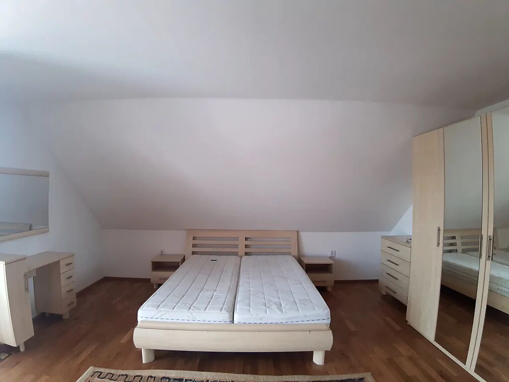V 1.patře se nachází prostorná vybavená ložnice se samostatnou koupelnou se sprchovým koutem, dva vybavené dětské pokoje, pokoj pro hosty, pokoj, koupelna s vanou, sprchovým koutem a WC.
