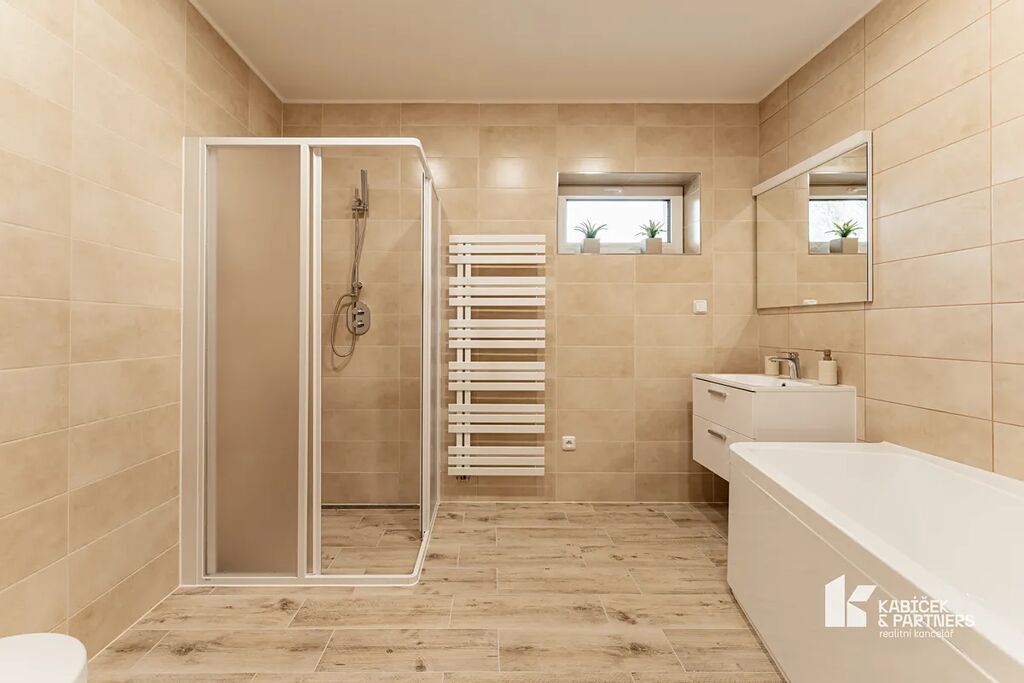 - Jsou tu dvě koupelny. Ta u ložnice zůstává soukromá, druhá – blízko obýváku – slouží pro hosty.