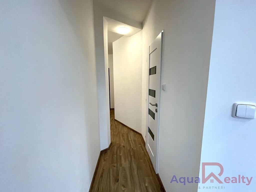 V předsíni je nová vestavěná skříň s regály a po levé straně se nachází nově vybavená koupelna s toaletou, vanou, umyvadlem, žebříkovým topením, dvěma skříňkami a automatickou pračkou. Kuchyň je vybavena novou kuchyňskou linkou včetně vestavěných spotřebičů (plynový sporák, elektrická trouba, digestoř, lednice), odkládacím prostorem a vstupem na balkon (4,4 m2) s orientací na jihovýchod. Z kuchyně se dostaneme do obývacího pokoje/ložnice s připojením STA, internetu a dvojím vstupem na druhý balkon (3,7 m2) s orientací na jihozápad.
