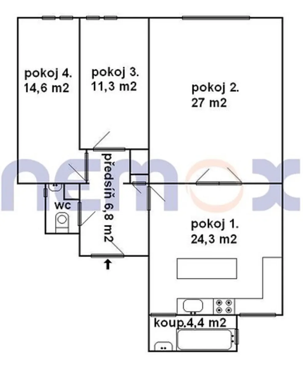 Prostorný byt 4+kk, 94 m2, se nachází ve druhém podlaží pětipodlažního secesního domu s výtahem přímo v centru Brna. Byt je v osobním vlastnictví.