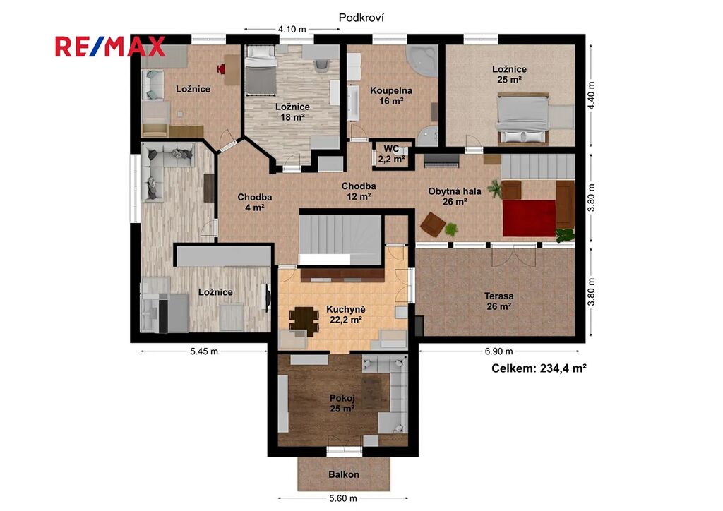 V 2. NP se nachází: Kuchyně (cca 22,14m²), pokoj 1(cca 29,85m²), pokoj 2(cca 24,90m²), pokoj 3(cca 19,18m²), pokoj 4 (cca 24,97m²), jídelna ( 21,56m²), chodba (cca 32,65m²), obytná hala (cca 26,98m²), koupelna (cca 16,54m²), toaleta (cca 1,49m²), terasa (cca 27,36m²). Bytová jednotka má samostatný vstup.