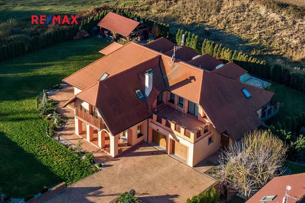 Nabízíme Vám k prodeji rodinný dům s venkovním bazénem a garáží s kapacitou 2 vozů v obci Chlumčany. Zastavěná plocha je 303m². Nemovitost disponuje třemi bytovými jednotkami 5+1, 3+1, 2+1(cca 636m²). Celková výměra pozemku je 2148m², zahrada 1845m².
