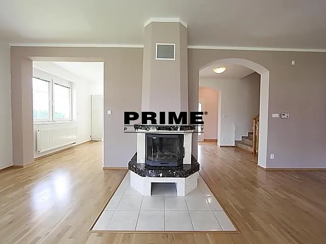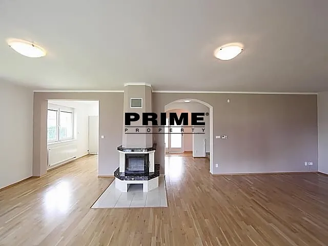 Samostatně stojící, 5 ložnicový, nezařízený dům se 2 koupelnami k pronájmu, 6+1, 400m2. Nemovitost se nachází v klidné rezidenční lokalitě v Průhonicích, 10 minut chůze na náměstí a k Průhonickému parku, pár minut jízdy ke komerční a nákupní zóně Čestlice (například supermarkety Albert a Billa, obchody Makro a Kika, aquapark), 15 minut autobusem na stanici metra Opatov a 20 minut jízdy k Britské mezinárodní škole.