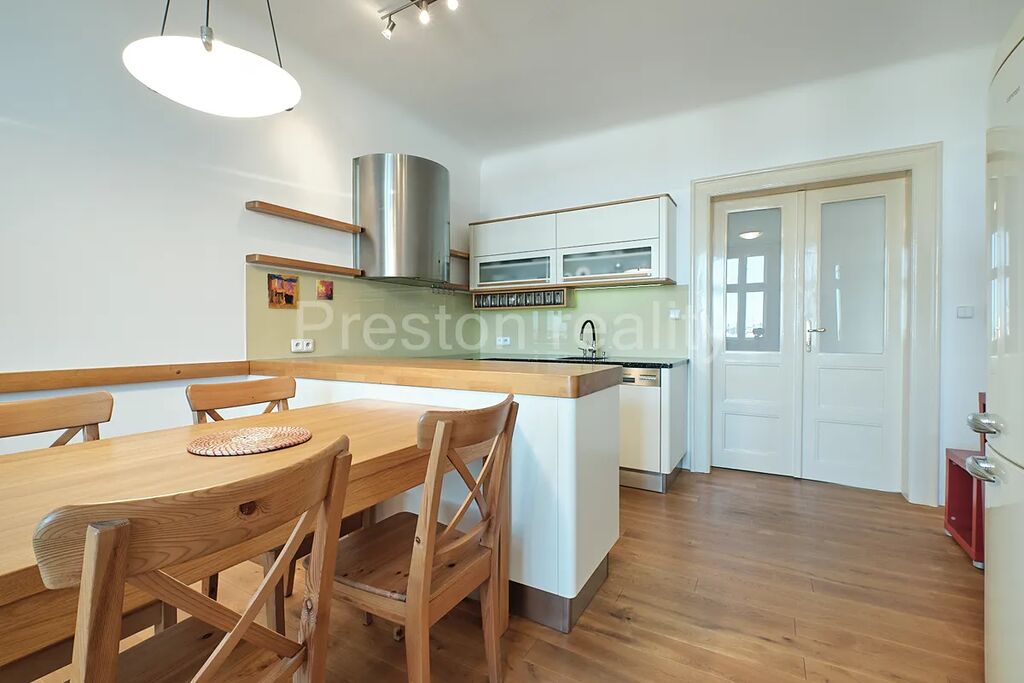 V docházkové vzdálenosti od domu je kompletní občanská vybavenost, spousta nových restaurací s venkovním posezením, farmářské trhy, kavárny, mnoho parků a zeleně včetně oblíbených Riegrových sadů. U Žižkovské věže funguje letní amfiteátr. Metro Jiřího z Poděbrad pouze 400 m od domu (cca 6 min chůze). Doporučujeme jako hezké bydlení pro páry nebo rodinu, preferujeme nekuřáky bez zvířat. Kauce 30.000 Kč. K nastěhování ihned.