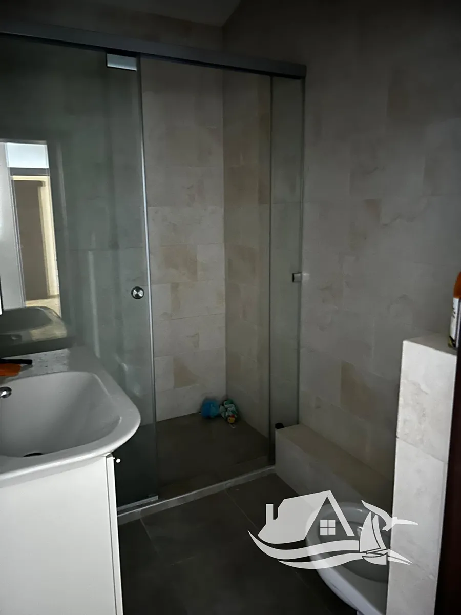 Byt je kompletně vybaven nábytkem na míru a kvalitními spotřebiči. Podlahy jsou pokryty laminátem, stěny laděny do jemných tónů, koupelny obloženy španělskými obklady – každý detail byl promyšlen pro maximální pohodlí.