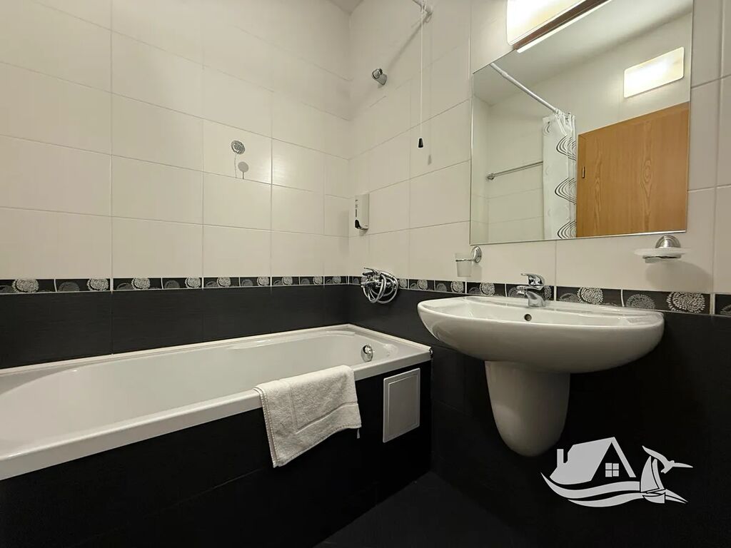 Dispozice bytu je promyšlená a praktická: vstupní hala vás přivítá a vede do hlavního obytného prostoru, kde pohodlně využijete jídelní stůl i relaxační část. Kromě obývacího pokoje zde najdete dvě ložnice, koupelnu s toaletou a velkou terasu s jižní orientací a přímým panoramatickým výhledem na moře, kde můžete každé ráno sledovat probouzející se pobřeží.