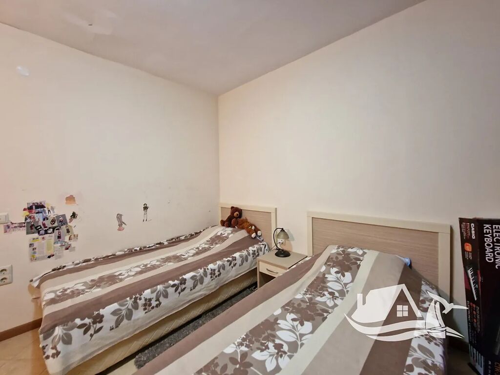 Představte si, že otevřete dveře do svého nového domova a první, co vás uchvátí, je prostor a světlo, které zalévá obývací pokoj spojený s kuchyňským koutem. Tento třípokojový apartmán o velikosti 94 m² se nachází na čtvrtém patře šestipodlažního komplexu Royal Sun v srdci Slunečného pobřeží, pouhých 400 metrů od moře, a nabízí harmonii komfortu a středomořské atmosféry.