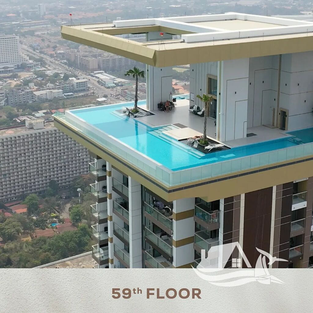 Komplex je skutečně unikátní – na 56. patře se nachází panoramatický bazén, kde při plavání zažijete opravdový pocit luxusu.