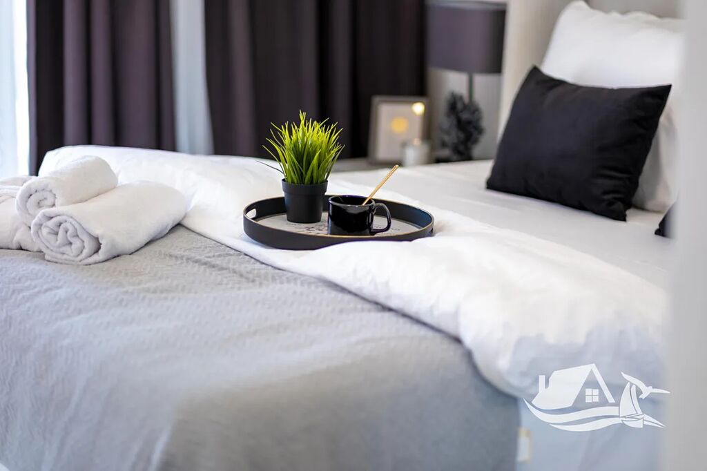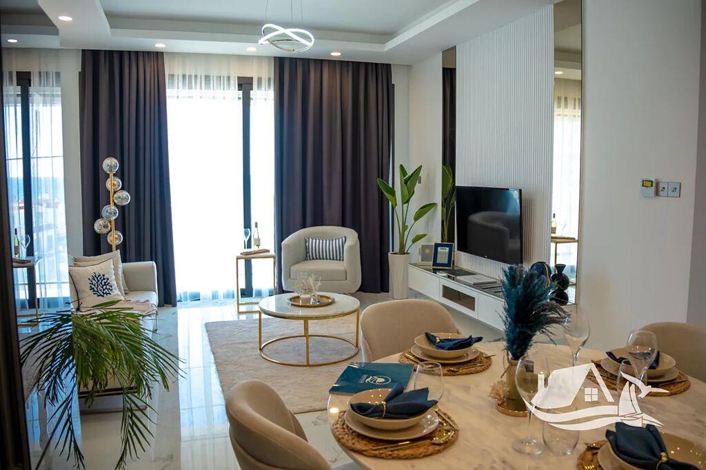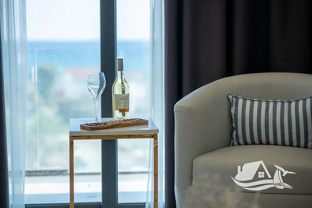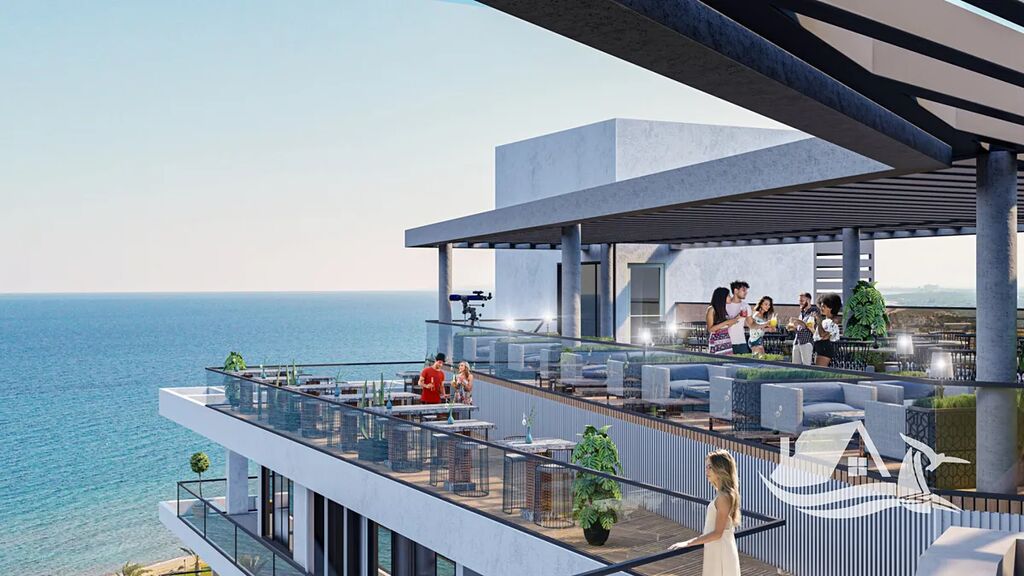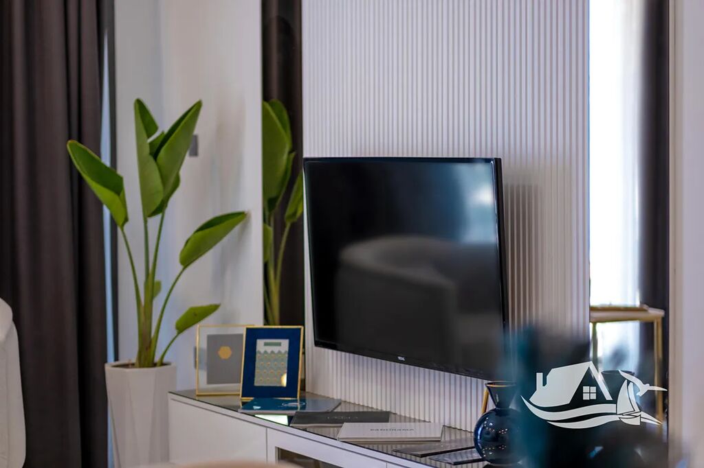 Moderní apartmán 2+kk s balkonem a krásným výhledem na moře a bazén. Nachází se jen pár kroků od pláže, nabízí soukromou pláž, venkovní bazén, fitness, sky bar a barbecue zónu.
