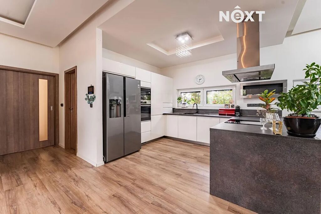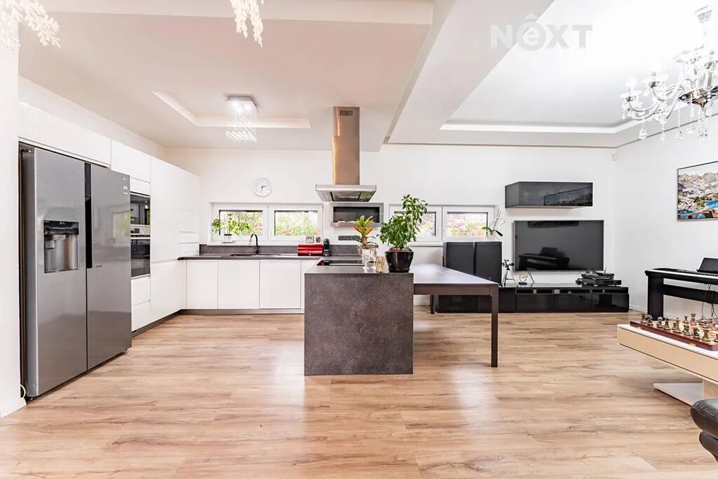 Dům nabízí dispoziční řešení 4+kk s prostorným obývacím pokojem, který díky netradičně vysokým stropům (3,2 m) působí mimořádně vzdušně a velkoryse. Na něj navazuje moderní kuchyně s jídelní částí, odkud je přímý vstup na terasu o velikosti 26 m² a zahradu s jihozápadní orientací. Kuchyňská linka je vyrobena na míru, vybavena vestavěnými spotřebiči a navržena tak, aby poskytovala maximum pracovního i úložného prostoru. Součástí domu je místnost pro šatnu, samostatná toaleta pro hosty, technická místnost s pračkou, sušičkou a bojlerem. Koupelna s vanou i sprchovým koutem a další toaletou, tři neprůchozí pokoje a garáž o ploše 25 m² s automatickými vraty.