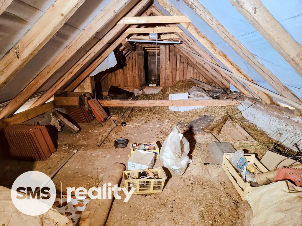 Dispozice domu zahrnuje obývací pokoj, ložnici, kuchyni, koupelnu a verandu. Nad obytnou částí se nachází prostorná půda, která je připravená k dalšímu využití – nabízí se možnost vybudování podkroví nebo rozšíření obytné plochy dle vašich představ.