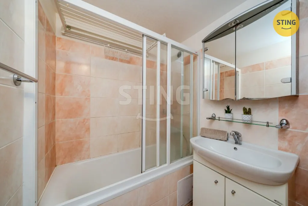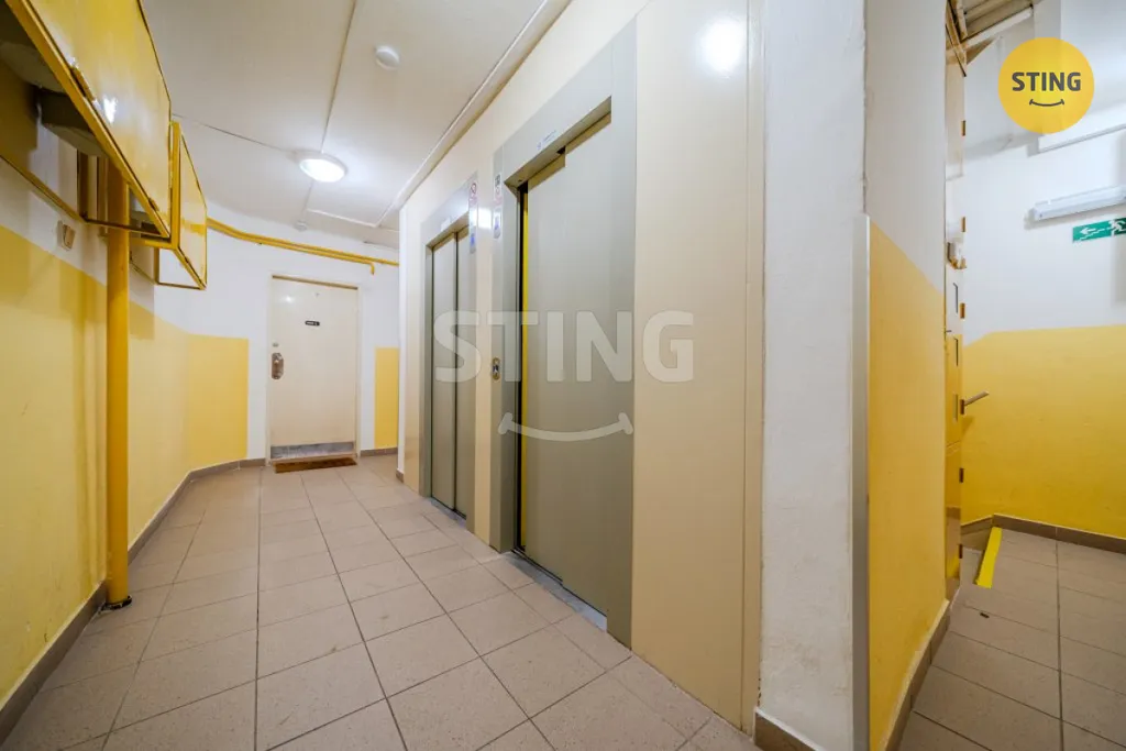 Byt se nachází v 8. patře revitalizovaného domu se dvěma výtahy na patře, kamerovým systémem a bezbariérovým přístupem. Dispozice je praktická – obývací pokoj s kuchyní a vstupem na balkon, dva neprůchozí pokoje, koupelna s vanou, samostatná toaleta. Elektřina částečně v mědi.
