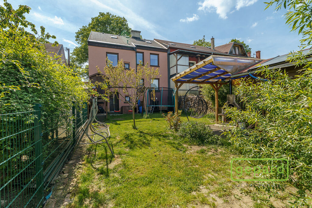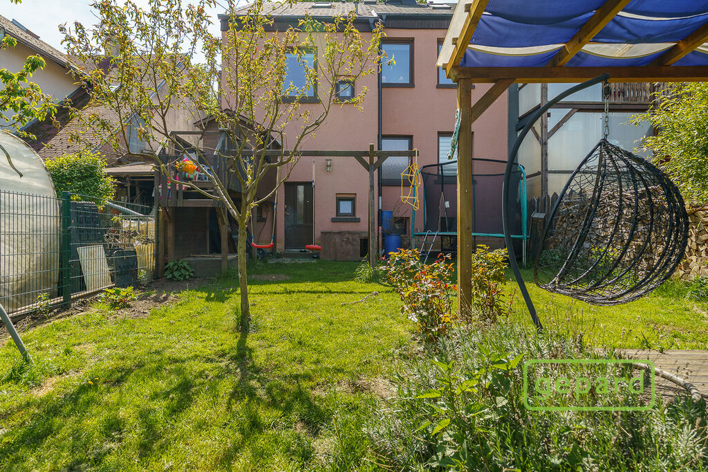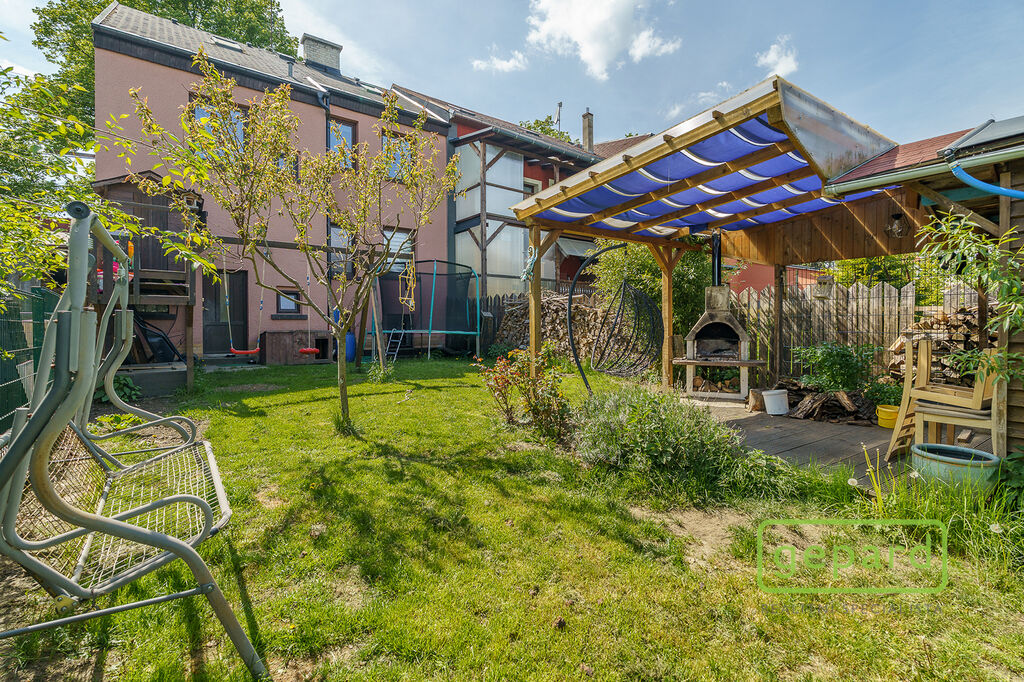 Za domem se rozkládá zahrada o velikosti 172 m² jako oáza klidu a pohody. Pod pergolou se můžete usadit s šálkem kávy a nechat se unášet zpěvem ptáků nebo připravovat večeři na grilu pro vaše nejbližší. Děti si tu mohou užívat radosti ze hry na trampolíně či ve svém koutku s houpačkami a kdo má rád zahradničení, jistě ocení skleník, kde si může vypěstovat vlastní bylinky a zeleninu. V létě osvěží zahradní bazén, v zimě pak okouzlí blízké lyžařské a běžkařské trasy.