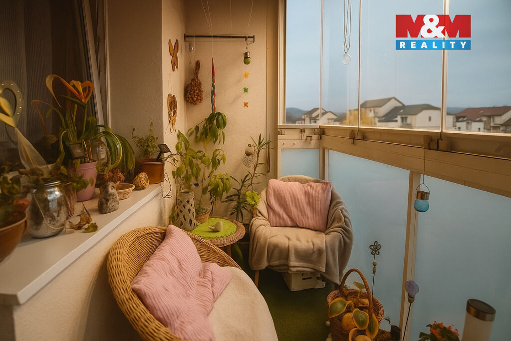 Dispozice bytu potěší svou vzdušností a praktičností. Ložnice s výstupem na prostornou, zasklenou lodžii nabízí ideální místo k ranní kávě nebo večernímu odpočinku s výhledem.