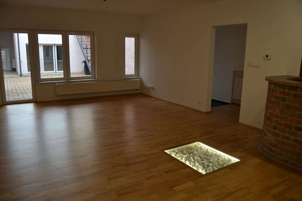 Prodej rod. domu po rekonstrukci s garáží a sklepem v Brně, Husovicích, rozhraní Černých Polí. Dům po rekonstrukci v technicky výborném stavu, s vnitřním atriem a velkou garáží, dispozičně 6 + 1 / v přízemí vstupní chodba a kotelna, kuchyně s obývacím prostorem, WC, šatna a technická místnost, vstup do sklepa, 1 NP dva pokoje s lodžiemi, WC, koupelna a šatna, 2 NP velký nedělený prostor a pracovna /. Dům je umístěný v klidu vnitřního atria, od ulice oddělený velkou garáží s terasou s výhledem na Černá Pole. Podlahová plocha domu cca 195 m2, vytápění novým kombinovaným plynovým kotlem Wiessmann s akumulační nádrží. V koupelně podlahové topení, jinde radiátory. Velká garáž umožňuje stání auta větíšch rozměrů, včetně obytného, případně dalšího auta v atriu domu. Terasa nad garáží zajímavě rozšiřuje možnosti využití a společně s vnitřním atriem tak plně nahrazuje zahradu. Pohodlné bydlení v širším centru Brna s výborným dopravním napojením bez dalších investic. Pro více informací a sjednání termínu prohlídky volejte makléře nabídky.