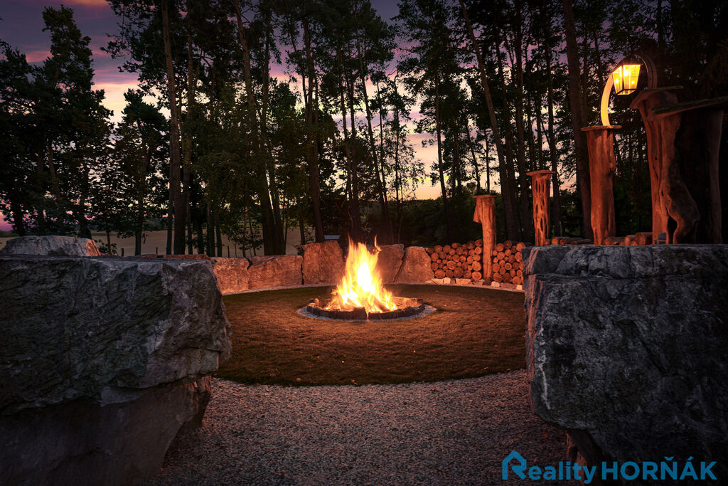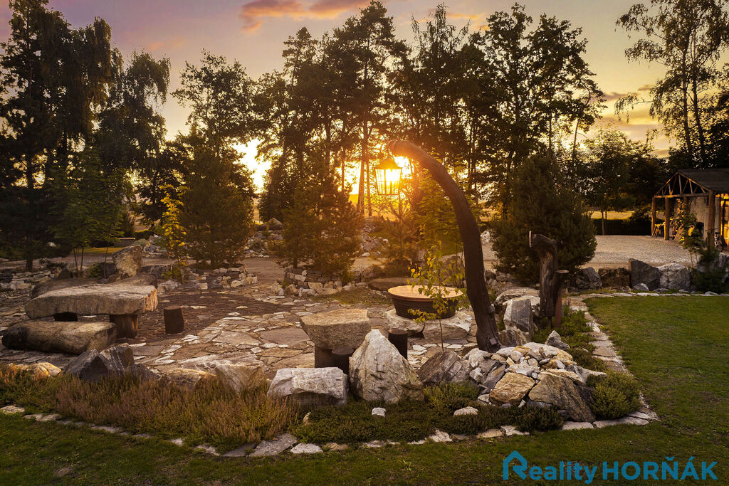 Soubor parcel o celkové výměře 17.169 m2 leží „na samotě“ mimo zastavěnou část obce a územním plánem je včleněn do kategorie F – plochy smíšené, obytné. Současný majitel pojal nabízené území jako výzvu k uměleckému pojednání. V naprostém souladu s přírodou zde vytvořil jedinečné místo, kde má každý kámen, každý strom, každý kousek dřeviny, či květeny své pečlivě vybrané místo. Unikátně zde vytvořil několik účelově odlišných zón, které však dohromady působí jako jedinečný, nezaměnitelný celek. Jen ten zbytek původní stavby jakoby sem nepatřil, jeho místo čeká na stavbu, která území dotvoří a novému majiteli poskytne netradiční, nadstandardní, úchvatné bydlení (na "první dobrou" přichází v úvahu například roubenka s velkými prosklenými plochami, ale třeba to nakonec bude úplně jinak :-)
