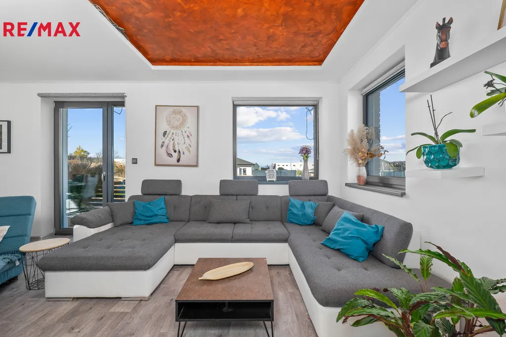 Dům nabízí 4 pokoje, které nabízí pohodlný život pro rodinu a jsou se samostatnými vstupy. Obývací pokoj, který je propojený s kuchyní s ostrůvkem a dále se zde nachází krbová kamna, která jsou ideální k posezení s celou rodinou a k relaxaci. Dům je velice prakticky navržen, vstupuje se chodbou, kde je na míru dělaná šatna, po pravé straně se nachází zádveří, dále navazuje na technickou místnost. Prostorná koupelna se sprchovým koutem, dvoj umyvadlem a vanou a WC, samosatný WC. Po pravé straně se nachází samostatná ložnice, dále 2 dětské pokoje a chodbou se navazuje vstupem do obytné místnosti s kuchyní. Velmi krásně řešený, kde rodina najde zázemí a pohodlí. Kuchyňská linka Vám nabízí plnohodnotný osvícený ostrůvek s barem, kde se nachází indukční varná deska, dále je kuchyň řešená do L.