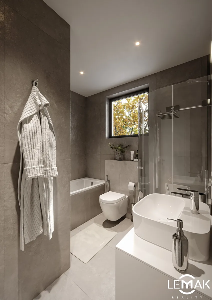 Samozřejmostí jsou plastová okna s trojskly, příprava na předokenní žaluzie, lepené vinylové podlahy, úsporné teplovodní podlahové vytápění napojené na elektrokotel s možností využití sníženého tarifu na dodávky elektřiny.