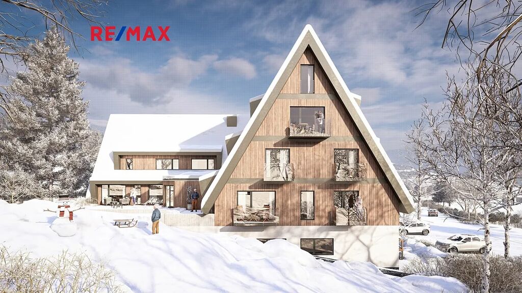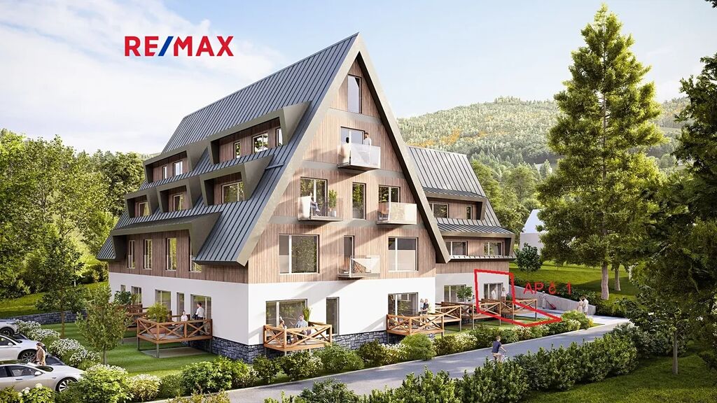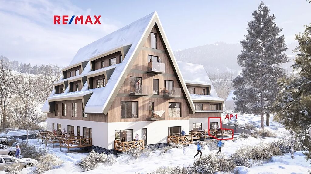 Prezentovaný apartmán č. 1 o dispozici 2+KK se nachází v přízemí a disponuje podlahovou plochou 42,3 m². K jednotce náleží terasa o velikosti 9m², který umožňuje relaxaci s výhledem na okolní přírodu. K apartmánu dále náleží privátní uzamykatelná kolárna + lyžárna (2,5m²), možnost využívat společného wellness.