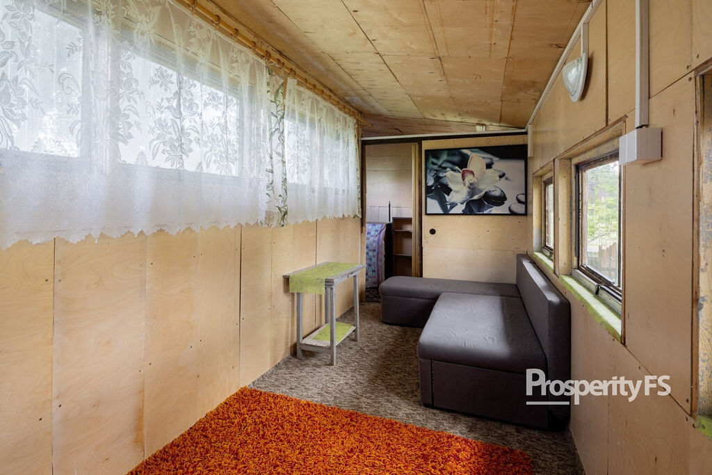 Na pozemku se nachází dřevěná chata se základním zázemím, jako jsou kamna, sedačka a jednoduché kuchyňské vybavení. Součástí je také maringotka, která může sloužit pro další přespání nebo jako úložný prostor.