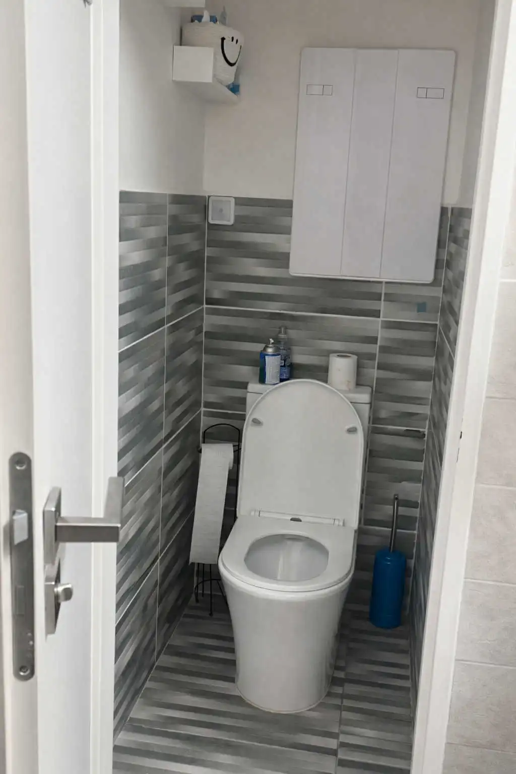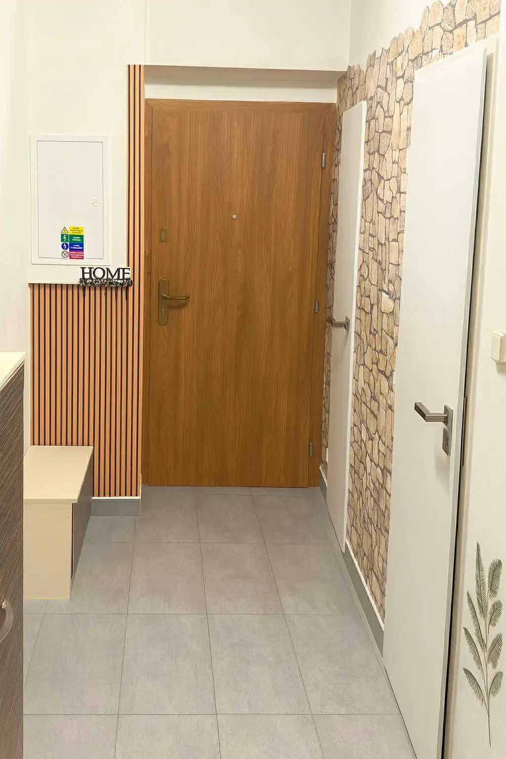Dispoziční řešení: chodba se vstupem na samostatné WC a vstupem do koupelny se sprchovým koutem, umyvadlem a el. bojlerem na ohřev vody.