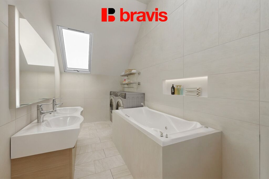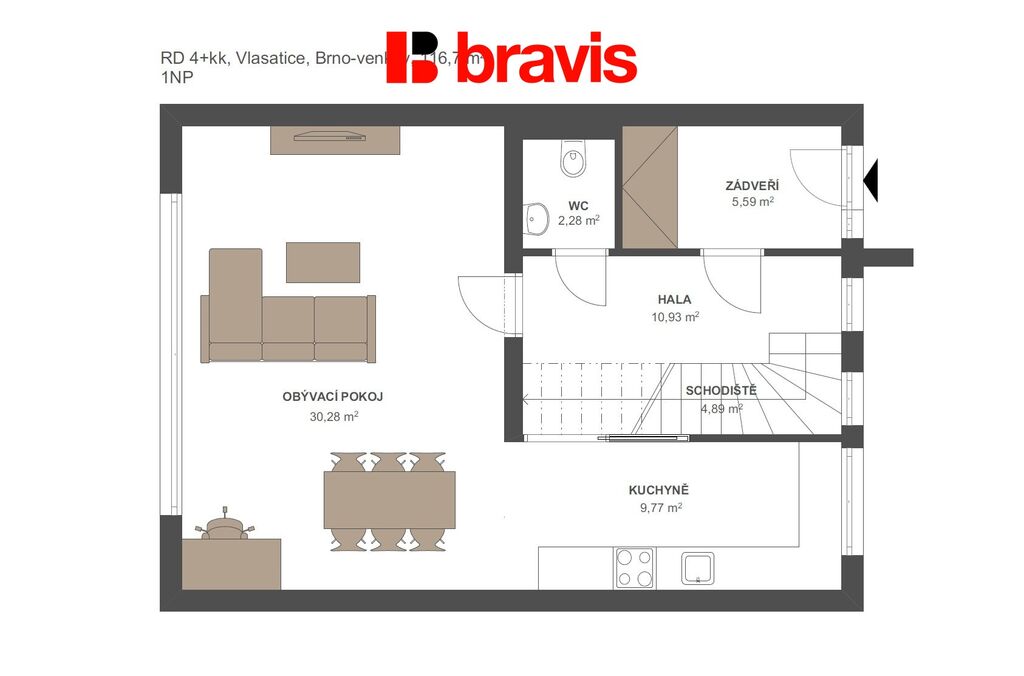 Moderní rodinný dům nabízí dispozici 4+kk s celkovou plochou 117 m2, zahrádku a parkování.