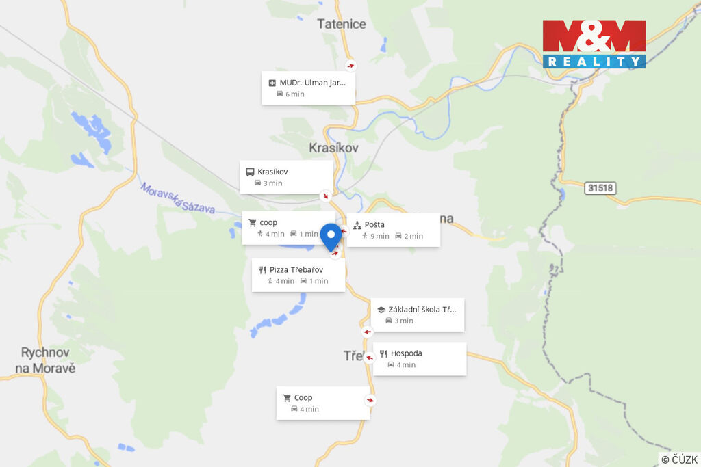 Nabízíme prostorný stavební pozemek o výměře 1 414 m² v klidné obci Třebařov s výbornou dostupností do Moravské Třebové, Svitav, Lanškrouna i České Třebové. Pozemek je napojen na inženýrské sítě – vodovod, kanalizaci a elektřinu. Plyn je připravený k napojení u pozemku. Nachází se zde starší rodinný dům, vhodný k rekonstrukci nebo přestavbě, a garáž se zpevněnou plochou pro parkování. Třebařov nabízí příjemné venkovské prostředí s kompletní občanskou vybaveností – školka, škola, obchod i vlaková zastávka přímo v obci. Díky blízkosti dálnice D35 je zajištěno rychlé spojení na Olomouc i Hradec Králové. Klidná a cenově dostupná lokalita, ideální pro rodinné bydlení nebo investici do budoucna. Pro více informací a domluvu prohlídky kontaktujte makléře. S financování vám rád pomůže náš finanční specialista.
