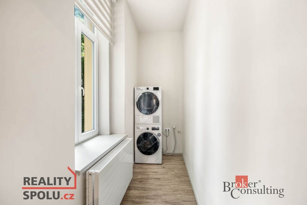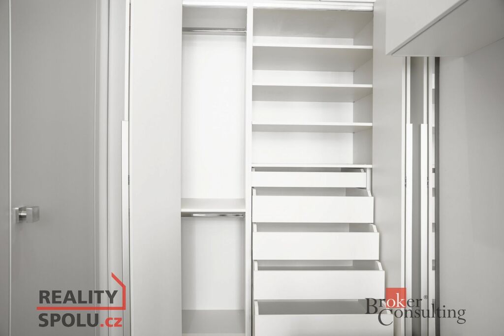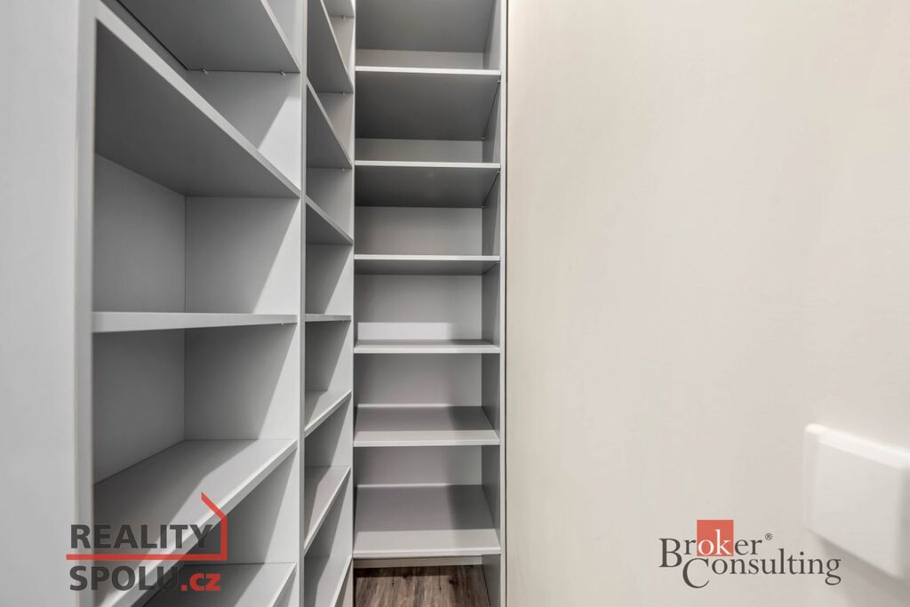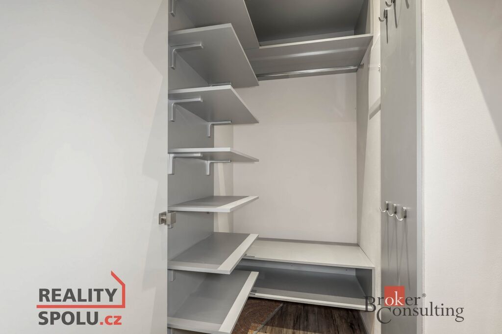 Součástí bytu je i technická místnost hned vedle koupelny, kde je k dispozici nová pračka i sušička, zn. Beko, dostatek prostoru pro odkládání různých zařízení domácnosti. Pro uskladnění oblečení je u vchodu bytu šatna s vestavnými regály na boty a oblečení a dostatkem prostoru i pro sportovní věci.