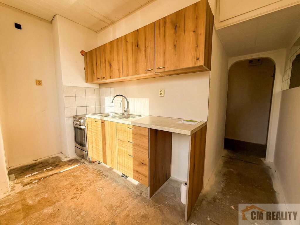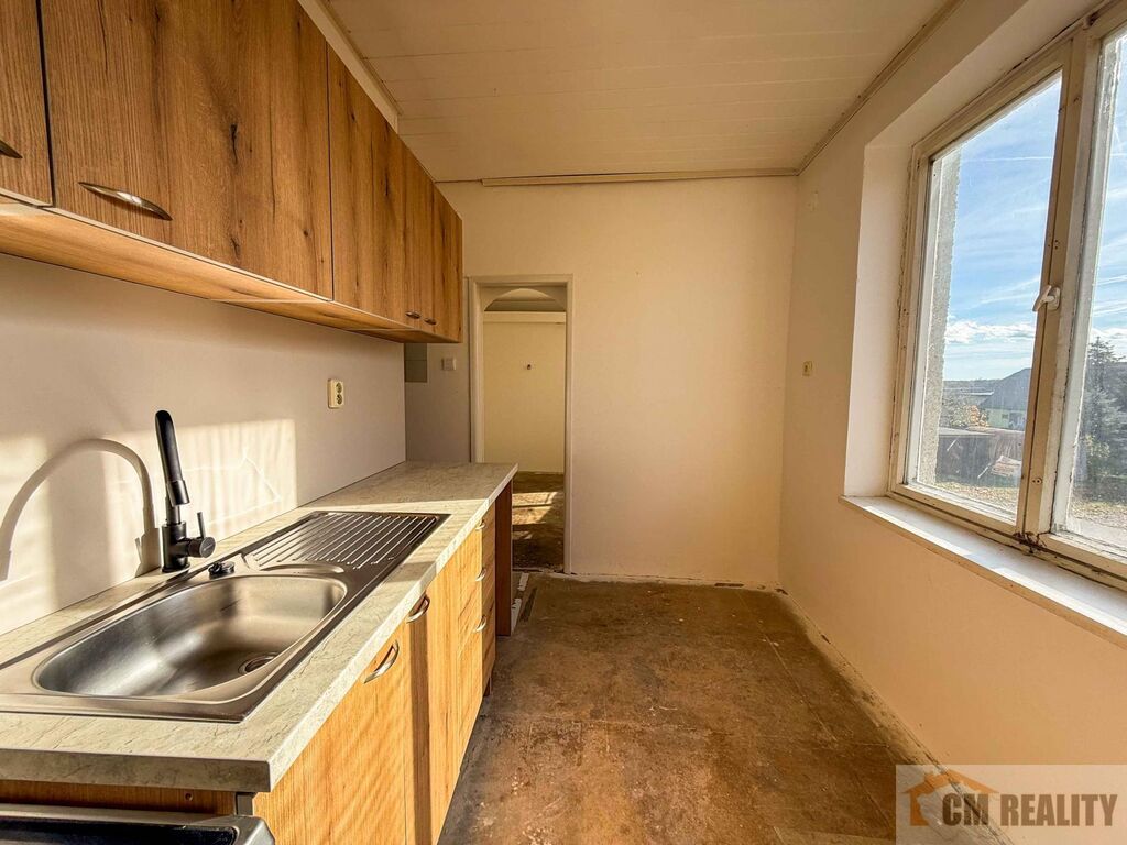 Byt je světlý, s orientací na jihozápad, s příjemným výhledem do okolní zeleně. Nemovitost je určena ke kompletní rekonstrukci. Ideální pro mladý pár nebo jako investice na pronájem. Součástí je nová kuchyňská linka a interiérové dveře. Původní dřevěná okna, potřeba dodělat podlahy.