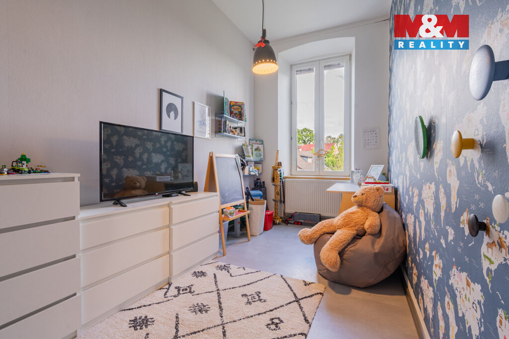 Dominantou je prostorná kuchyň OCA-Küchen v matné černi s měděnými detaily, stylová koupelna s dvojitým umyvadlem a vzdušný obývací pokoj s přípravou na krb. Ložnice i dětský pokoj jsou světlé a útulné. Součástí je sklep a parkování u domu. Nová fasáda, střecha i zateplení budovy, bude zanedlouho dokončeno a již je zaplaceno. Využití zahrady po domluvě s majitelem. Domluvte si prohlídku a nechte se okouzlit, objevíte zcela výjimečný Genius loci. Dále k bytu patří podíl 1/8 na společných částech a parkovací místo před domem. Případnému zájemci o zahradu zajistíme jednání v tomto směru.