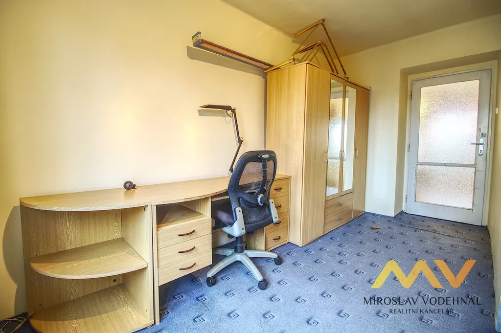 Byt je dispozičně řešen jako kuchyň se spíží, dva samostatné pokoje, koupelna s vanou, samostatné WC, předsíň a komora. Součástí vybavení je sedací souprava, jídelní stůl se židlemi, nová kuchyňská linka s plynovým sporákem, obývací stěna, manželská postel, šatní skříně, pracovní stůl, lednice, mikrovlnná trouba, pračka a televize. K bytu náleží menší balkón 1 m2. Sklep není k dispozici.