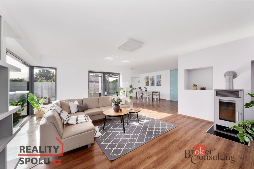 • Vzdušný interiér s velkoformátovými okny a orientací do zelené, vzrostlé zahrady zajišťuje dostatek denního světla a soukromí.