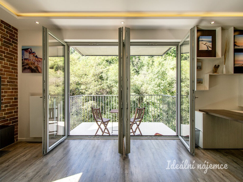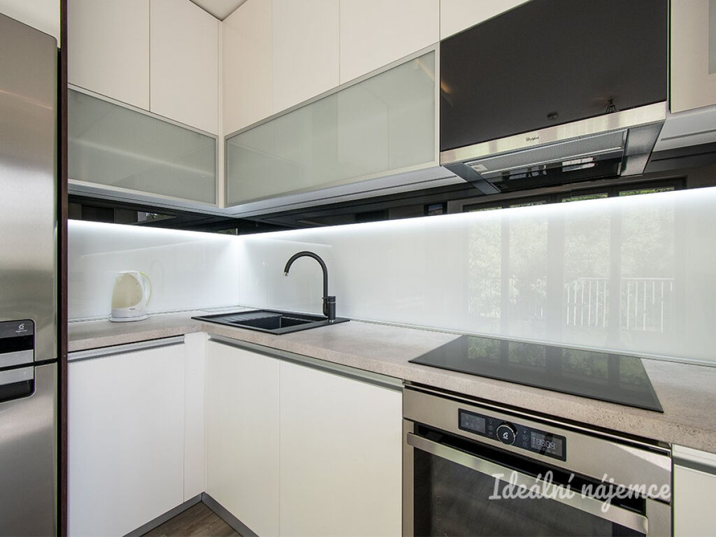 Byt se nabízí plně vybavený nadstandardním nábytkem. Byt navíc disponuje tzv. chytrou domácností - která je řízena tabletem. V místnostech jsou zabudované reproduktory, a ovladačem se ovládají el. rolety na oknech a osvětlení bytu. V kuchyni najdeme lednici, elektrickou troubou, sklokeramickou desku, digestoř a mikrovlnnou troubou. Kuchyně má k dispozici i barový stůl s židlemi. Obývací část je velmi stylově zařízena televizí, komodou a pracovním stolem s židlemi. Součástí ložnice je postel, komoda a vestavěná šatní skříň. V koupelně je vana, umyvadlo a pračka. Toaleta je oddělená.