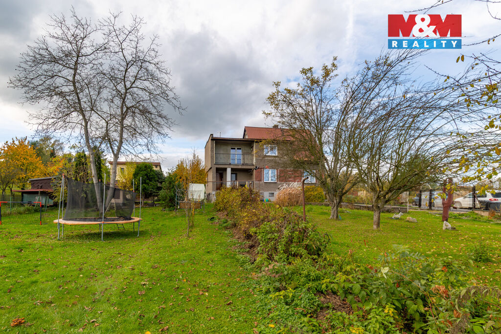 Z balkónu je příjemný výhled na okolní krajinu. Pozemek o rozloze 867 m² poskytuje dostatek prostoru pro zahradu, odpočinek či venkovní aktivity.
