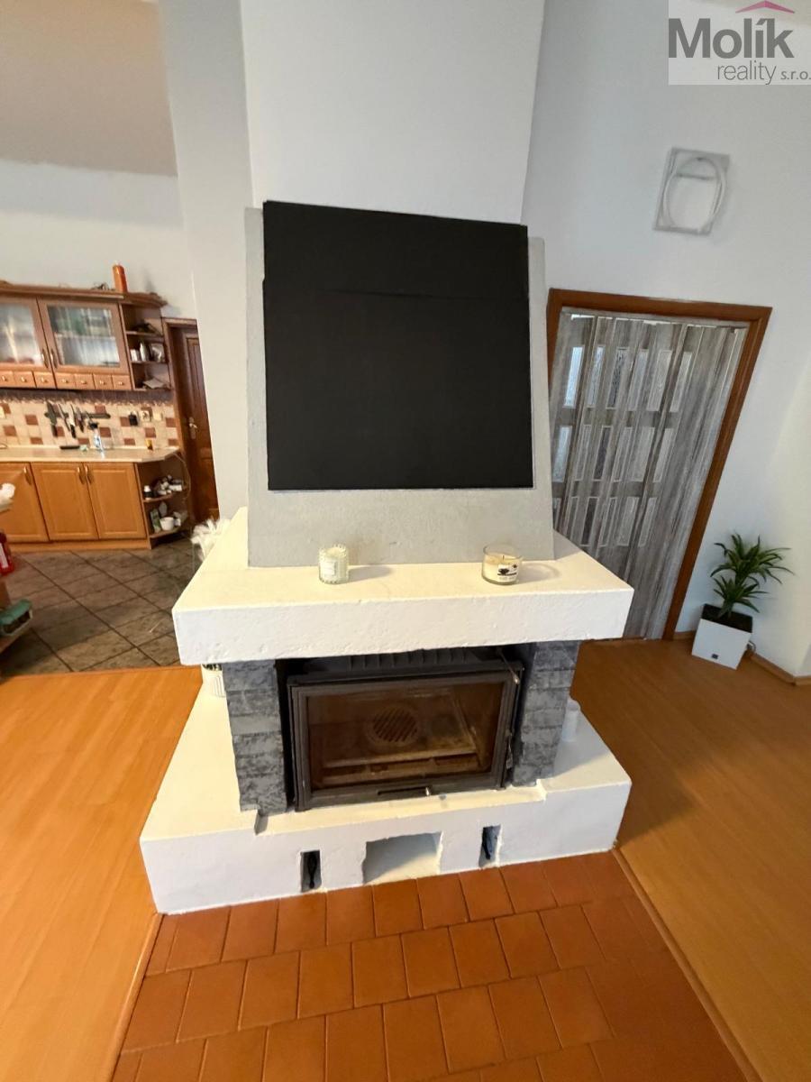 Příjemnou atmosféru domova doplňuje krb, který poskytuje nejen teplo, ale i útulnou pohodu.