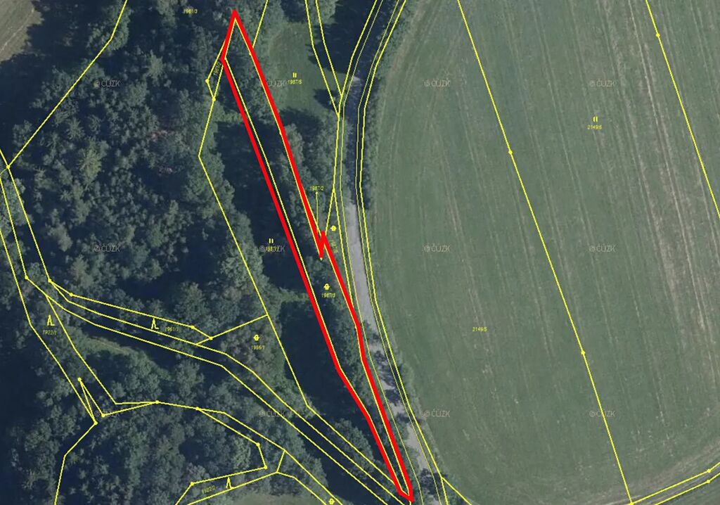 Lesní porost na nelesním pozemku, neplatí přísné předpisy pro les, možno částečně těžit.