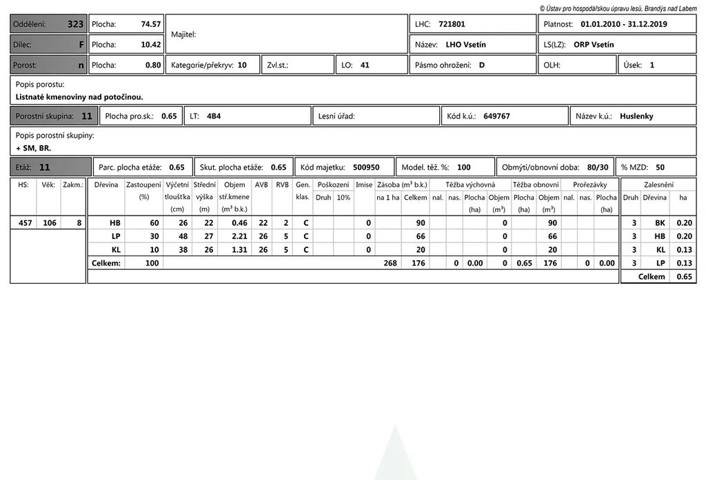 Zásoba dřeva v lese 176m3 (plus cca 100m3 na louce), stáří 114 let - celé k těžbě!
