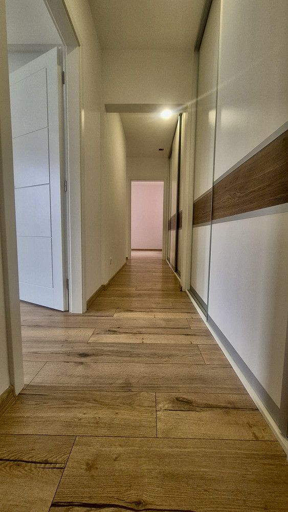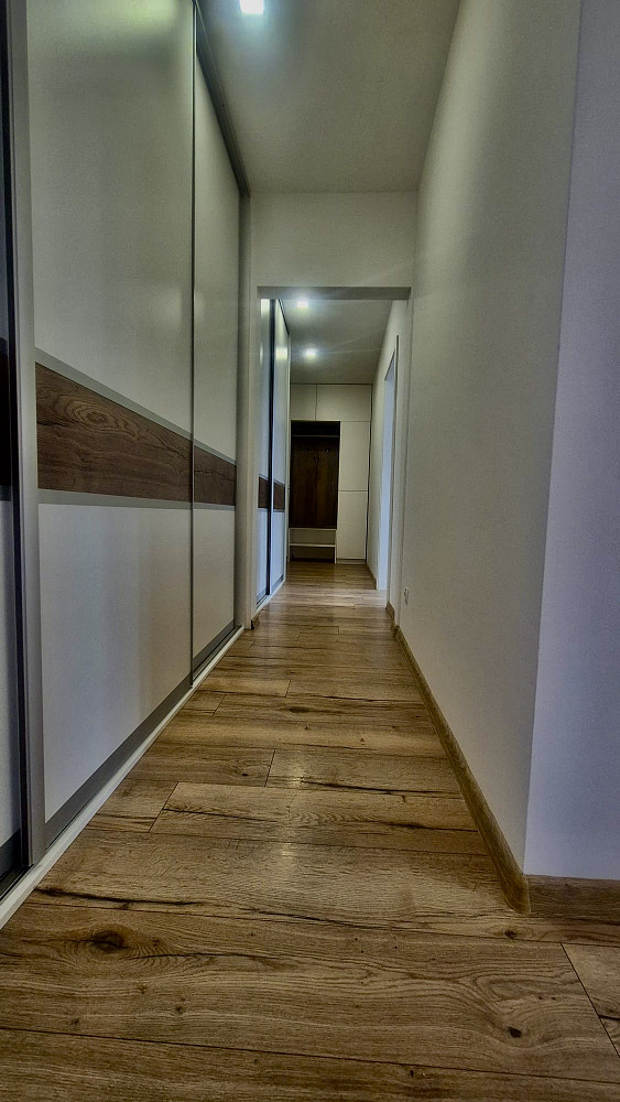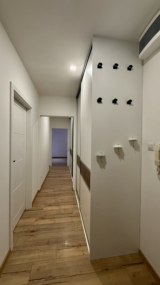 V předsíni nutno vyzdvihnout skříně na míru i předsínovou stěnu.