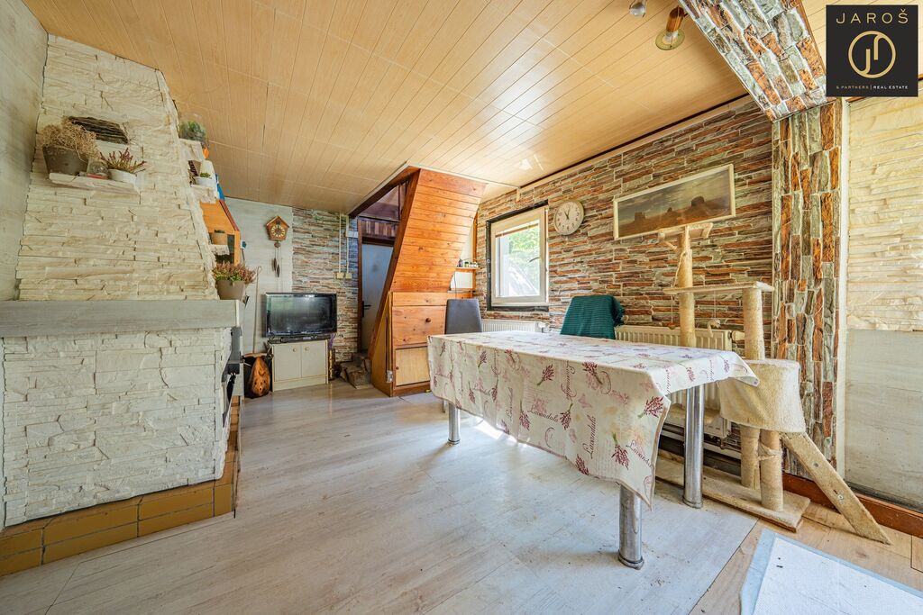 V přízemí se nachází vstupní chodba na ni navazuje obývací pokoj spojený s kuchyňským koutem, ložnice a koupelna s vanou a toaletou. V horním patře je další ložnice a prostorná terasa.