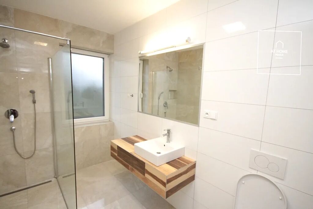 Luxusní novostavba, Horoměřice, nízkoenergetický dům na pozemku 660m2. Dvě patra, 200m2. Přízemí: vstupní hala, vstup do garáže (38m2), komora, koupelna se sprchovým koutem a WC, ložnice a prostorný obývací pokoj s kuchyní plně vybavenou spotřebiči. Vstup na terasu. V prvním patře: 3x ložnice, 2x koupelna (vana/sprchový kout), pracovna/ložnice. Dispozičně velice příjemně řešený dům, použité materiály v nadstandardní kvalitě, podlahové vytápění, trezor. Oblíbená lokalita Horoměřice. Klidné bydlení s výbornou dostupností MHD (BUS na metro Bořislavka 10min), pohodlná dostupnost na letiště i do mezinárodní školy ISP v Nebušicích. Poplatky 9.000,-Kč. Dům volný od února 2026.