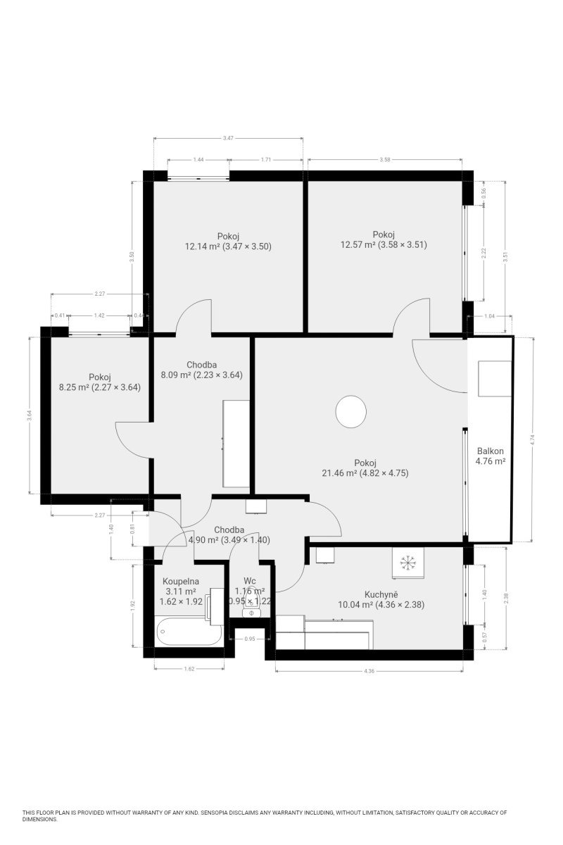 Byt o dispozici 4+1 a celkové výměře 82 m² se nachází v 5. patře panelového domu s výtahem. K bytu náleží i lodžie a sklep.