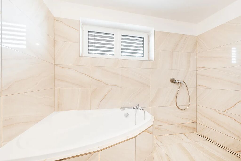 !!!PRODEJ DOMU PO VELKÉ SLEVĚ!!! Nabízíme k prodeji novostavbu moderního, patrového rodinného domu, o dispozici 5+kk s terasou a dvojgaráží s dílnou, která je situována na krásném místě, obklopena lesy a louky, v obci Miřetice, okr. Benešov. Dům leží na pozemku o celkové výměře 1181m2, zastavěná plocha domu je 178m2 a plocha užitná 259m2 vč. dvojgaráže, ale bez terasy domu, která má výměru 18m2. Dispozice domu - dům je stavěn terasovitě. V přízemí domu - vstup do domu ze zahrady - se nachází zádveří a navazující chodba (15m2), dvojgaráž (47m2), dílna nebo sklad (22m2), prádelna (7m2), hobby místnost (23m2) s výhledem do zahrady, technická místnost (10m2) se sprchovým koutem, umyvadlem a toaletou, dvě skladovací místnosti (10m2 a 4m2) a schodiště do patra. V obytné části domu - vchod z ulice - se nachází zádveří (6m2), chodba (12m2), obývací pokoj (33m2) s kuchyňským koutem - zde je instalována moderní kuchyňská linka vč. vestavných spotřebičů, jídelnou a vstupem na terasu domu, spíž (4m2), ložnice (11m2) se šatnou (5m2) a vlastní koupelnou (4m2) se sprchovým koutem, umyvadlem a toaletou, dva dětské pokoje (každý 13m2), koupelna (8m2) s vanou i sprchovým koutem a dvojumyvadlem, samostatné WC s umyvadlem (2m2) a šatna (5m2). Z terasy, na kterou se dostanete z obývacího pokoje je nádherný výhled do okolní přírody. Z prvního nadzemního podlaží lze lehkou úpravou vytvořit bytovou jednotku o dispozici 1+kk pro více generační bydlení se samostatným vstupem. Vytápění domu je řešeno tepelným čerpadlem typu vzduch/voda. Dále je v domě i rekuperace a dům je osazen žaluziemi na el. pohon. V obci se nachází obchod, zastávka autobusu. Škola a školka je ve 3km vzdálených Zdislavicích. Veškerá občanská vybavenost vč. obchodů, supermarketů, lékaře, škol a restaurací je v 8km vzdálené Vlašimi. Velmi dobrá je dostupnost do Prahy - automobilem trvá na cesta na stanici metra linky C Háje nebo Chodov cca. 35min. Dům lze financovat hypotékou. Půdorysy a další technické dokumenty rádi zašleme zájemcům mailem.