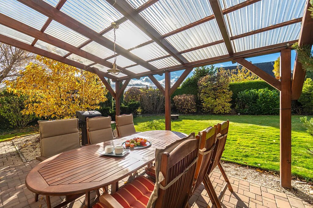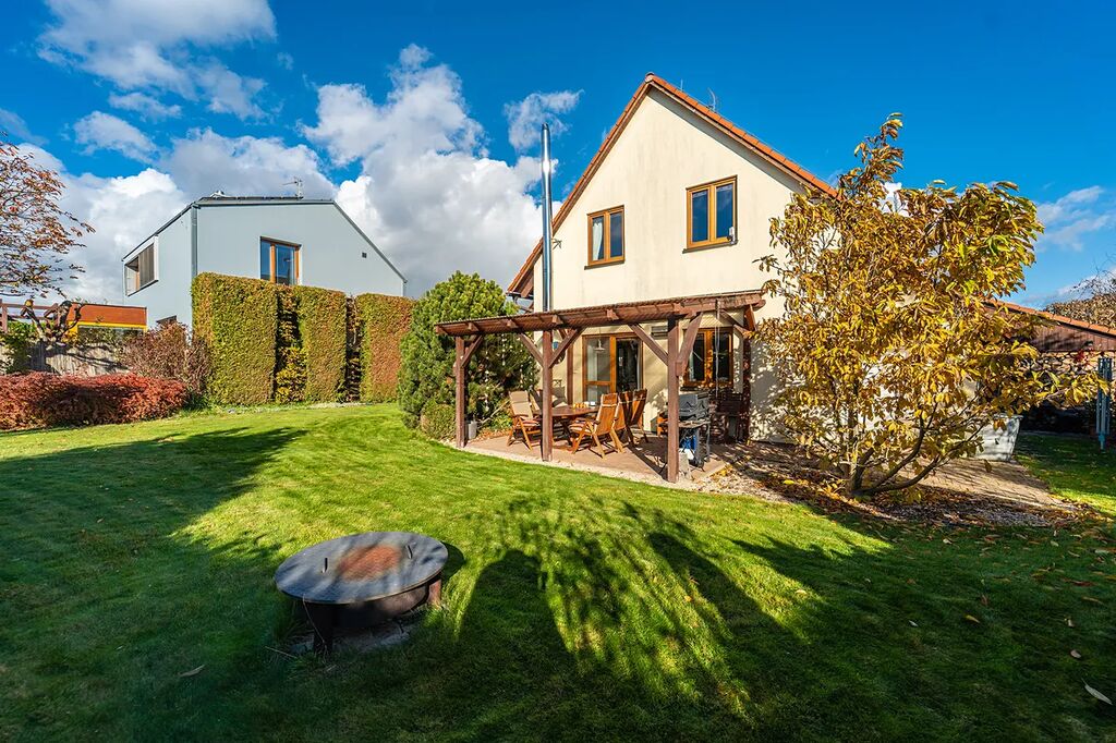 K domu náleží krásně udržovaná zahrada, která poskytuje naprosté soukromí. Příjemné posezení umožňuje zastřešená terasa (17 m2).