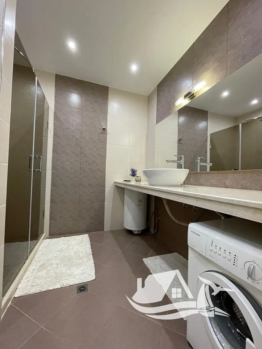 Součástí dispozice je prostorný obývací pokoj s kuchyňským koutem, dvě ložnice a koupelna. Podlahové vytápění a klimatizace v každém pokoji zajišťují příjemnou teplotu po celý rok, a apartmán se prodává kompletně vybavený přesně tak, jak jej vidíte na fotografiích. Stačí si přivézt kufr a začít žít.