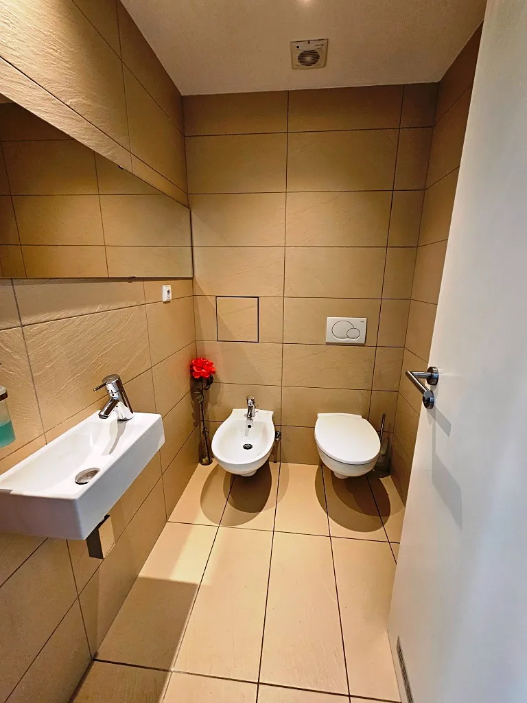 Byt je nadstandardně vybaven, má dřevěná eurookna, vstupní proti požární dveře, vnitřní bílé - převážně prosklené, podlahová krytina - dubové parkety + dlažba, Koupelna je vybavena ocelovou vanou, sprchovým koutem, umývadlem. WC je samostatné se závěsnou mísou, umývátkem a bidetem. Vytápění je ústřední, otopná tělesa Korado Radik, konvektory před vstupem na terasu. Kuchyňská linka vč. spotřebičů. Dle dohody lze přenechat některé vybavení.