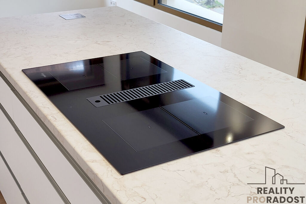 ✅ moderní kuchyňská linka s ostrůvkem a integrovaným odtahem,