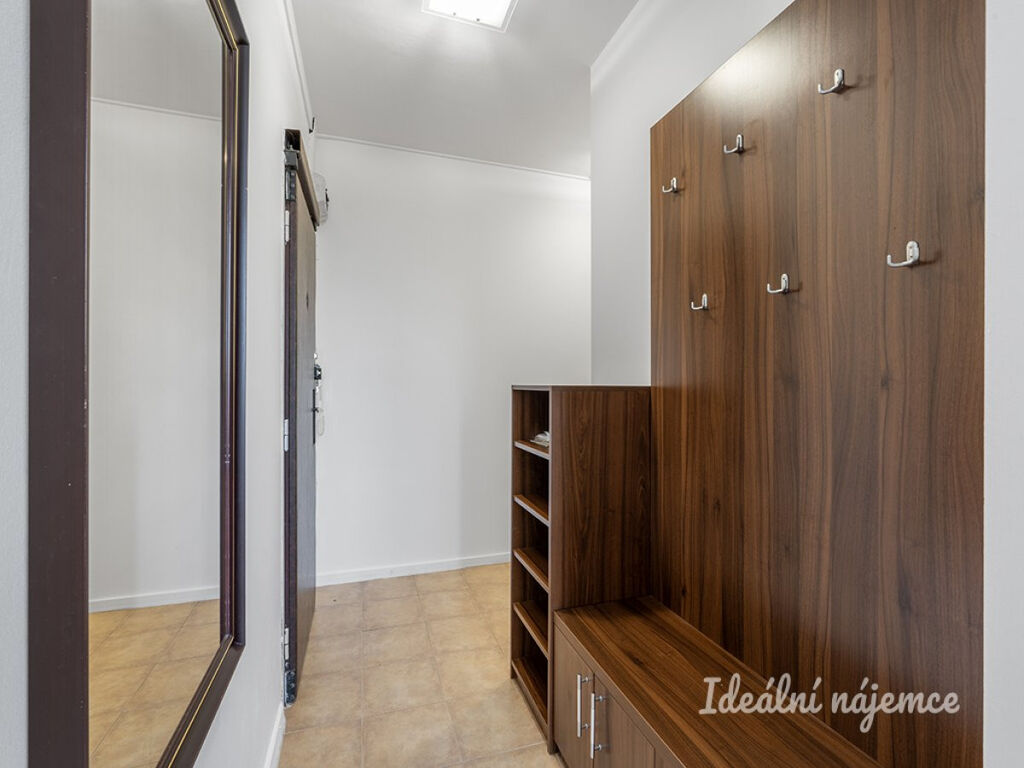 Byt se nabízí částečně vybavený. Kuchyně disponuje lednicí s mrazákem, myčkou, elektrickým sporákem, mikrovlnnou troubou a digestoří. Obývací pokoj je zařízený pohovkou, konferenčním stolkem, jídelním stolem s 2 židlemi a skříňkou. Součástí ložnice je postel s matrací. V druhém pokoji najdeme pracovní stůl s židlí a šatní skříň. V koupelně je vana, umyvadlo, zrcadlo, koupelnová skříňka a pračka. Toaleta je umístěna samostatně.