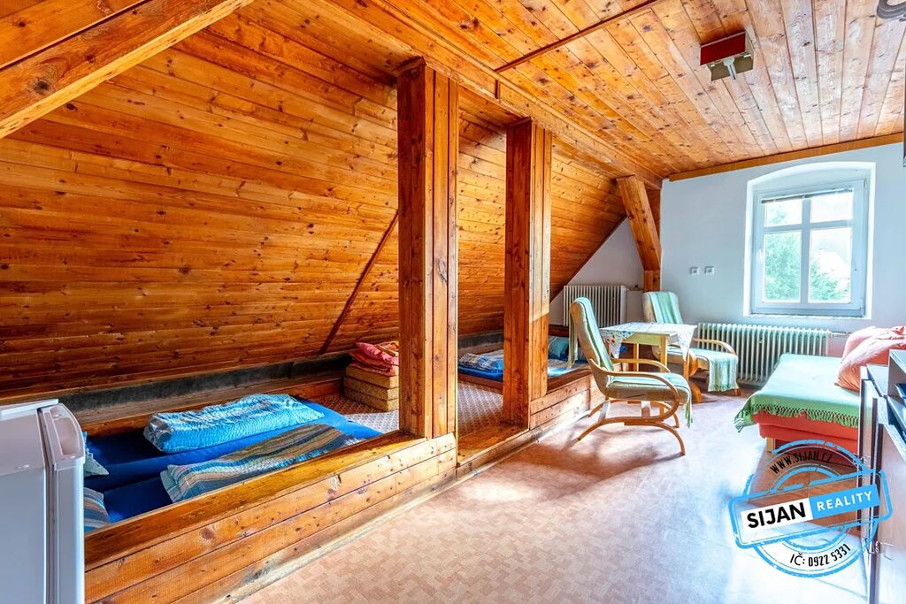 Půdní prostor vhodný k vestavbě dalších pokojů či apartmánů.