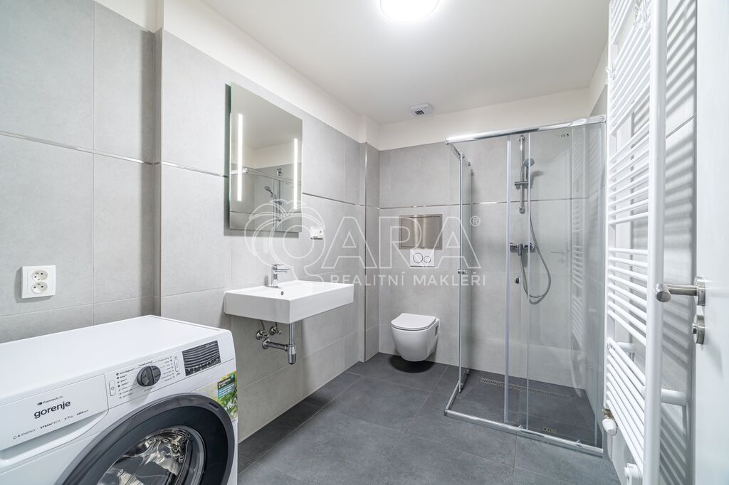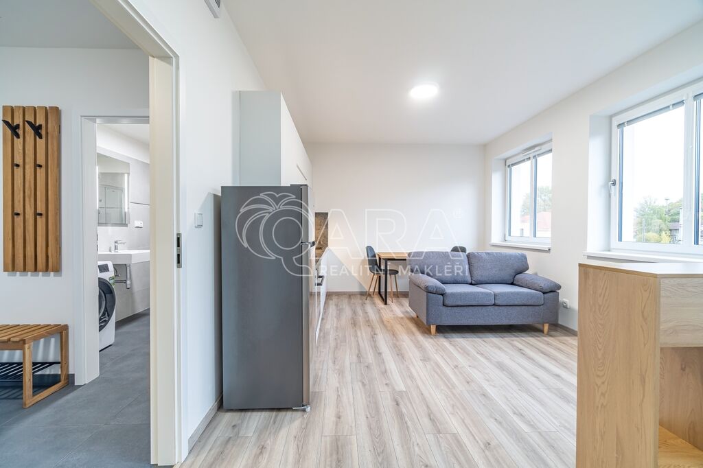 V bytě je k dispozici moderní kuchyňská linka vybavená indukční varnou deskou, digestoří, pečící troubou a myčkou nádobí, dále pak také chladničkou s mrazákem.