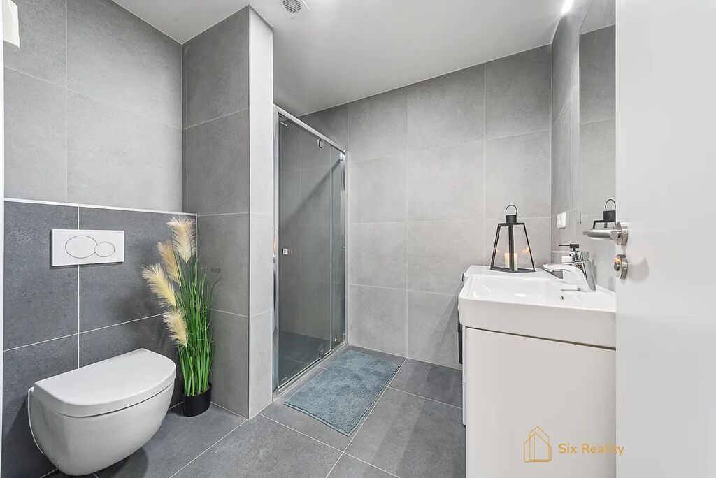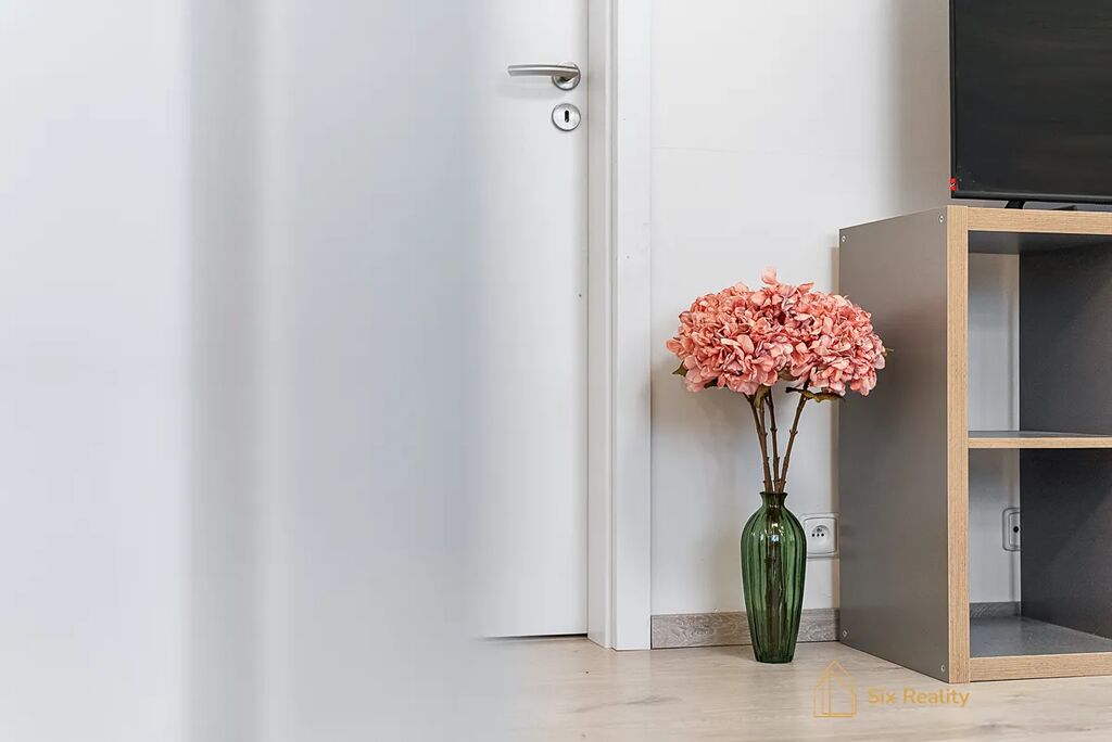 Byt o dispozici 3+kk s užitnou plochou 63 m² je ideálním domovem pro pár či mladou rodinu, která hledá prostor, světlo a jednoduchost. Moderní kuchyně na míru plynule přechází v obývací část a tvoří srdce celého bytu. Každé ráno vás probudí východní slunce, které sem proniká velkými okny i na pětimetrový balkon – ideální místo pro ranní kávu nebo chvíli klidu. Dispozice bytu působí svěže a přirozeně – nic tu není navíc. Vestavěné skříně v chodbě i v jednom z pokojů přinášejí pořádek a vzdušnost.